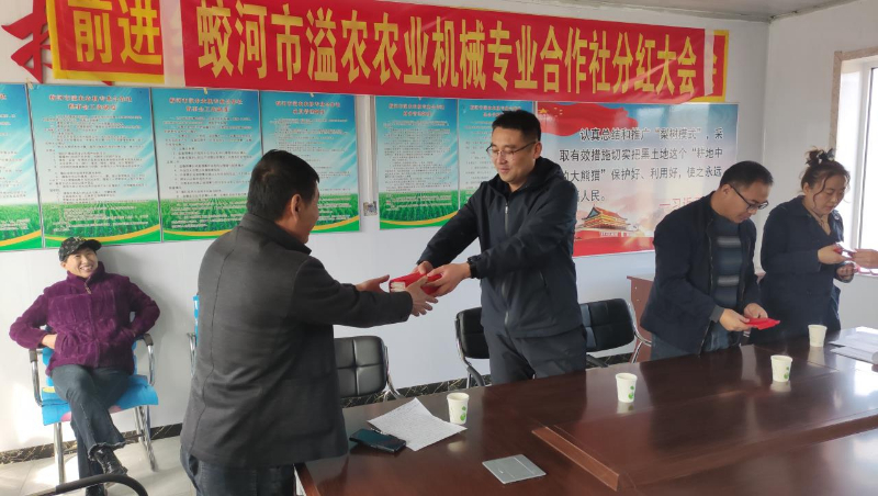 村民杨茂全是合作社最早的社员,合作社一成立,他就与合作社签订了土地托管合同。前不久,杨茂全同其他25户农户领到了所在合作社——蛟河市溢农农业机械专业合作社上年度的分红5.8万元。