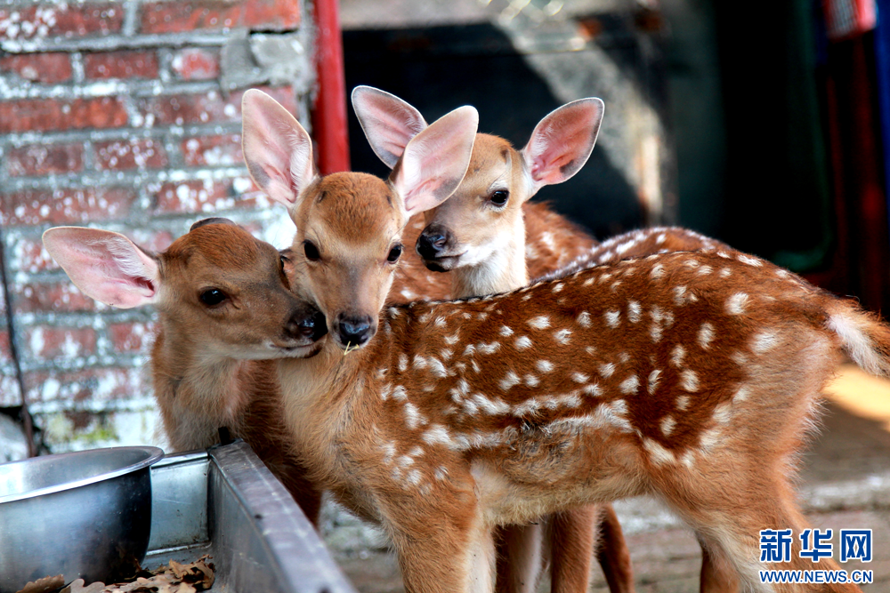 梅花鹿宝宝在圈舍里嬉戏。 新华网发