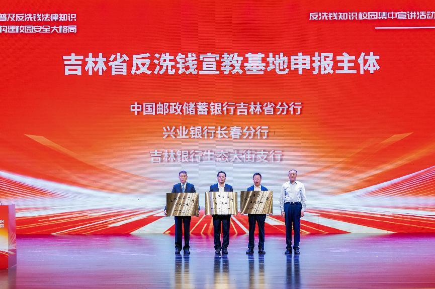 吉林银行总行副行长邢中成作为吉林省金融机构代表进行讲话。宣讲活动现场同时举行了反洗钱宣教基地授牌仪式,吉林银行长春分行生态大街支行成功申报为吉林省第一批反洗钱宣教基地,长春分行翟壮行长代表吉林银行接受中国人民银行吉林省分行授牌。