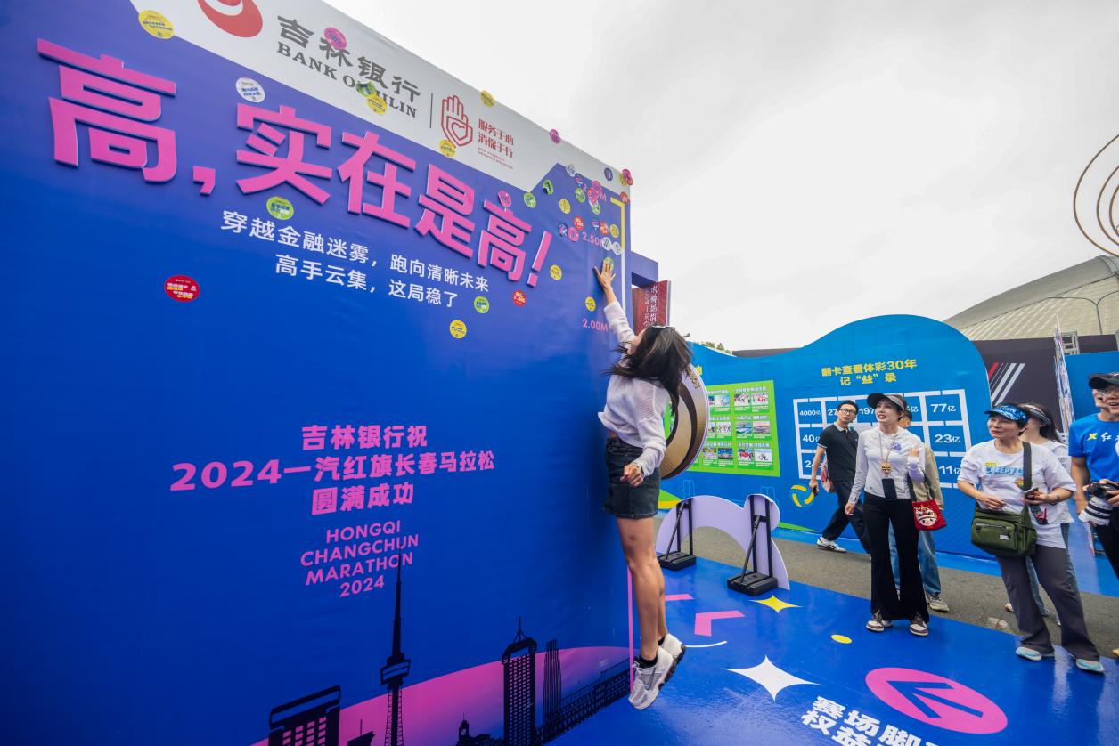 长马赛事期间,吉林银行将金融知识巧妙地融入到体育运动之中,通过跳格子游戏,向参赛选手及观展游客开展投资者教育,提高风险防范能力;现场的颈椎视力表不仅仅能检测视力,还可以让人了解金融消费者八项基本权益;“话里有话”互动区,一翻一看之间就能了解“刷单返利、贪外有贪”等骗局,使广大观展游客精准识破金融骗局中的谎言;摸高墙记录高度的贴纸上是一句句金融知识,寓意将金融消费者的风险防范意识一起提升至最高处……
