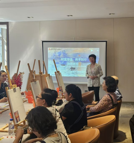 活动现场,主管行长么华莹发表了热情洋溢的致辞,感谢客户们一直以来对吉林银行长春凯旋支行的支持,同时表达了对价值客户权益的重视。随后,油画艺术家马老师为在场嘉宾带来了一场精彩的油画知识讲解以及绘画技巧说明,展示了油画的魅力,使在场嘉宾对油画艺术有了更深入的了解。在老师一对一的专业指导下,客户们动手尝试绘制属于自己的油画作品,体验了从构思到配色,到完成作品的全过程。这不仅是一种艺术的享受,也是一次心灵的放松,客户们沉浸其中,用心勾勒画作。凯旋支行主管行长及财富管理人员全程陪同,在现场发放精心制作的油画知识宣传材料,为客户答疑解惑。
