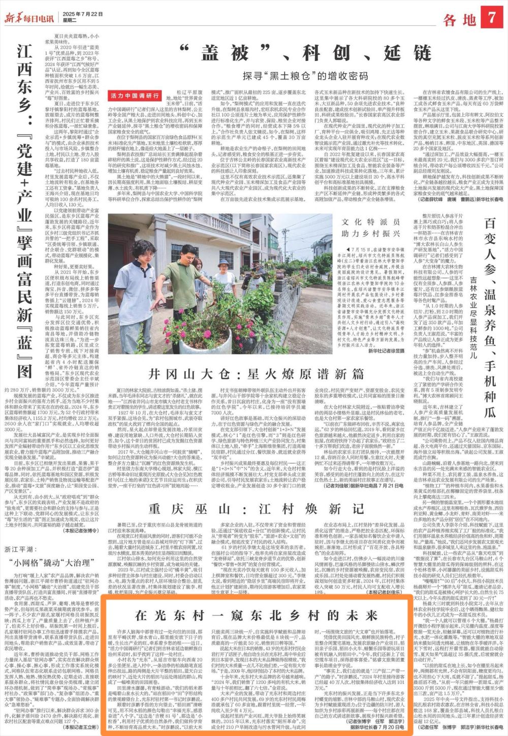 光东村的振兴发展,正是当下许多东北乡村蝶变的缩影。吉林中部的马鞍山村,现代农业为乡村赋能重现活力;位于边疆的防川村,游人如织为乡村添彩再展新颜……每个村庄都在用自己的方式讲述新故事,展现乡村振兴新希望。(记者张博宇 任军 郭洁宇)