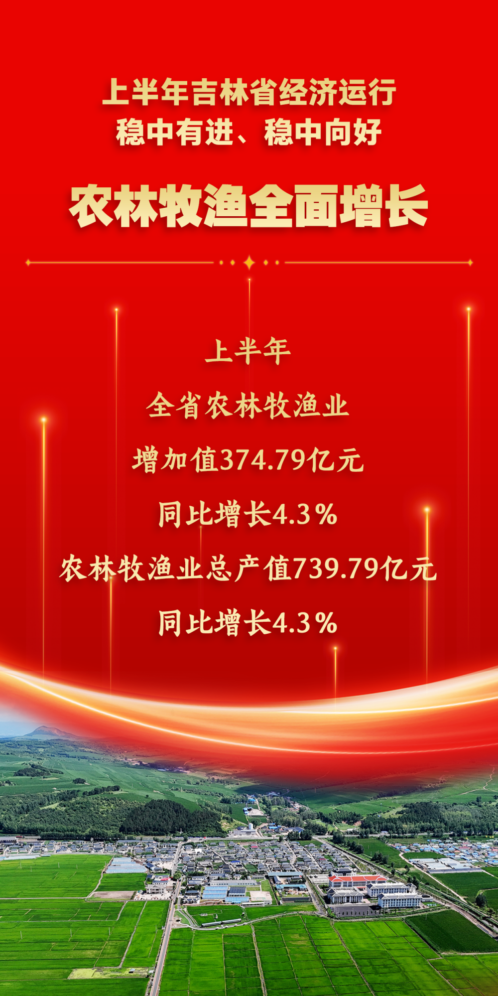 第一产业全面增长。上半年,吉林省农林牧渔业总产值同比增长4.3%。其中,农业(种植业)、林业、畜牧业、渔业产值分别同比增长7.0%、10.2%、3.6%、9.6%。从主要产品看,牛、羊出栏量分别增长6.6%、6.4%,牛肉、羊肉、禽蛋产量分别增长8.7%、6.4%、0.5%。