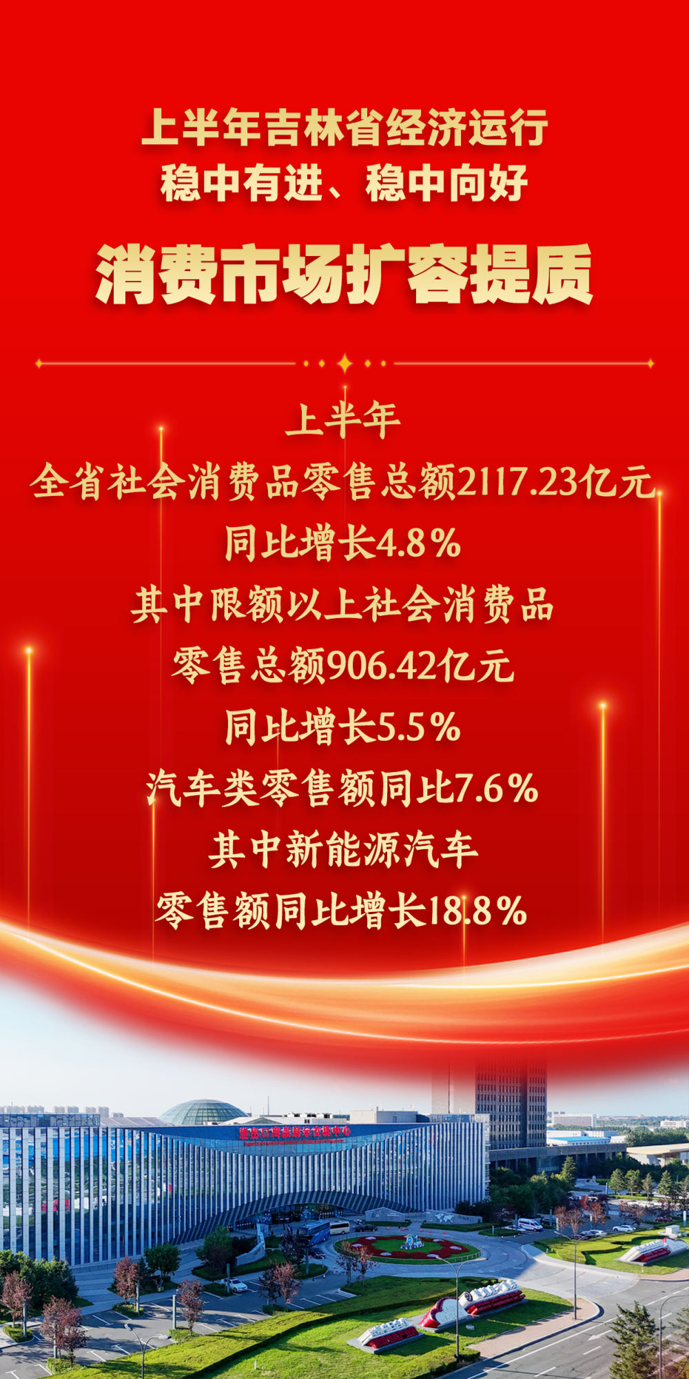 此外,吉林省上半年扎实推进“两重”项目开工建设,亿元及以上项目投资同比增长8.8%;加力扩围推动“两新”工作,全省设备工器具购置投资同比增长26.1%,拉动全部固定资产投资增长2.8个百分点;消费品以旧换新政策实施效果不断显现,限额以上社会消费品零售总额同比增长5.5%。